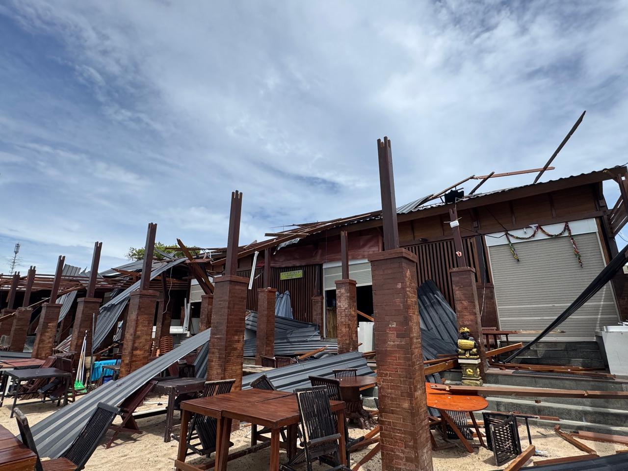 Kekuatan angin yang sangat besar menyebabkan atap bangunan terangkat dan terlepas dari rangkanya. Bahkan, struktur atap bagian bawah ikut tertarik ke atas dan beterbangan, hingga menghantam bangunan kafe lain di sekitarnya.