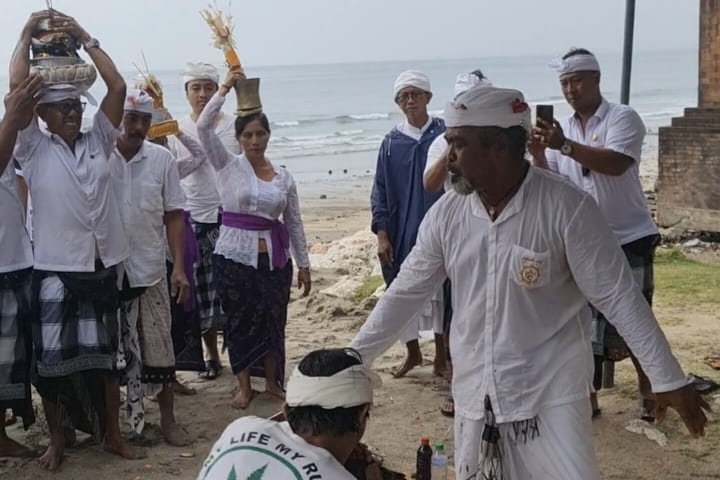 Di tengah hujan yang mengguyur kawasan Kuta sejak pagi, krama Desa Adat Kuta tetap teguh melaksanakan Upacara Nangluk Merana lan Pecaruan Sasih, Minggu (14/12). Upacara sakral yang bertepatan dengan rahinan Kajeng Kliwon Uwudan Sasih Kenem ini menjadi wujud nyata komitmen masyarakat adat dalam menjaga keseimbangan alam, kesehatan, dan keharmonisan kehidupan sekala-niskala, khususnya di kawasan pariwisata yang dinamis seperti Kuta.