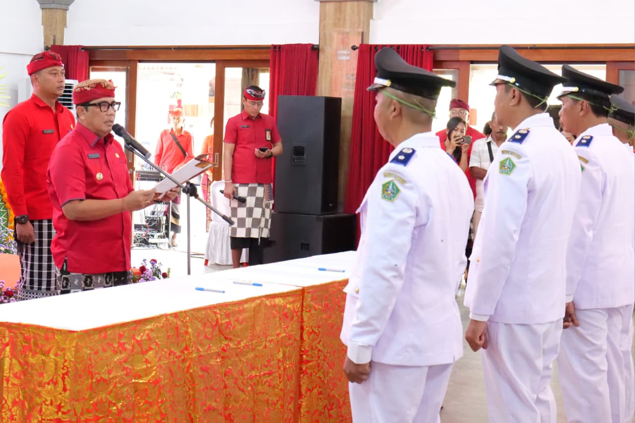Empat perbekel antar waktu (PAW) di Kabupaten Tabanan dilantik dalam sebuah upacara yang digelar di Graha Yadnya Sanjayaning Singasana Tabanan, Jumat (30/1). Pelantikan yang dipimpin langsung oleh Bupati Tabanan, Dr. I Komang Gede Sanjaya, S.E., M.M. ini menjadi bagian dari upaya memastikan kesinambungan roda pemerintahan di tingkat desa.