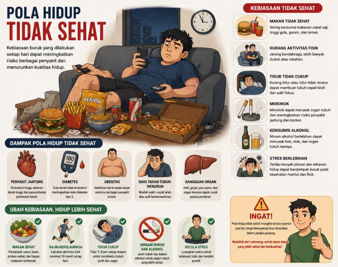 Menurutnya, kemajuan teknologi justru turut berkontribusi terhadap meningkatnya risiko stroke. Aktivitas yang semakin mudah dan serba instan membuat masyarakat cenderung kurang bergerak, sehingga memperbesar potensi penyakit metabolik.