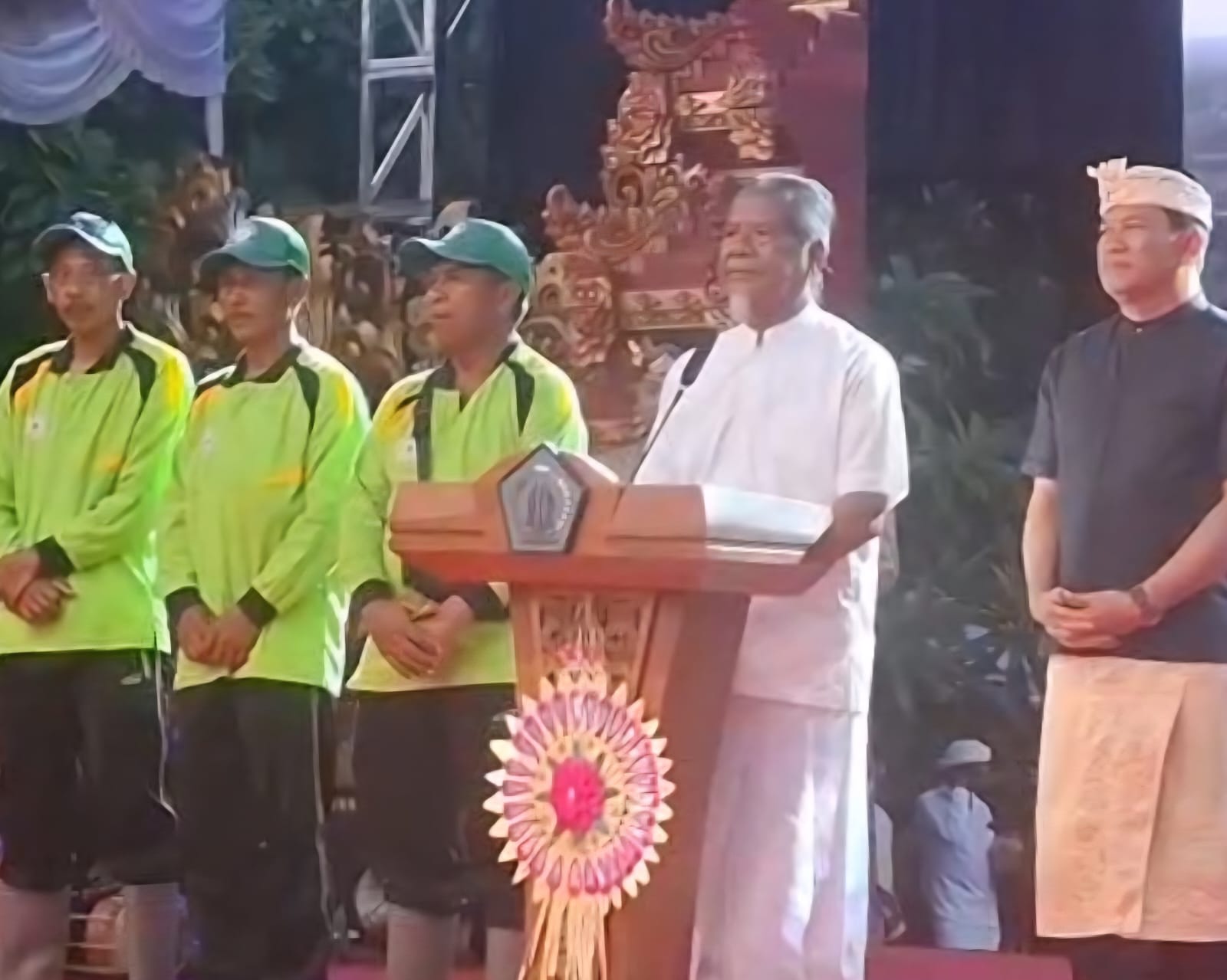 Bendesa Adat Kutuh bersama Perbekel Kutuh saat memperkenalkan satgas sampah di acara Pandawa Festival 2025. (ist)