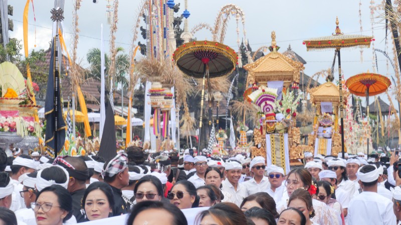 Suasana di Pura Ulun Danu Batur, Desa Adat Batur, Kintamani, dipadati ribuan umat Hindu seiring berlangsungnya rangkaian utama Pujawali Ngusaba Kadasa tahun Saka 1948. Tahun ini memiliki makna khusus karena bertepatan dengan satu abad peristiwa Rarud Batur, yakni perpindahan besar masyarakat akibat letusan Gunung Batur pada 1926.
