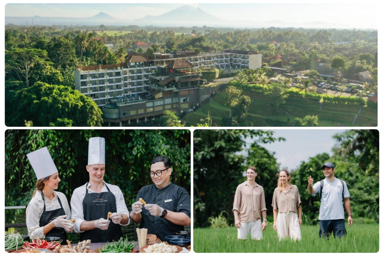 Marketing Communications Coordinator Sthala, a Tribute Portfolio Hotel, Ubud Bali, Putu Arneta Arma Putri didampingi Multi-property Director of Sales and Marketing, Sugeng Purnomo menambahkan bahwa hotel ini dirancang sebagai ruang pelarian yang menenangkan di tengah alam hijau Ubud. Selain panorama lembah yang memukau, tamu dapat menikmati Tahara Spa, Sungai Restaurant yang terbuka, Naga Rooftop Bar and Lounge, kolam renang infinity, serta berbagai aktivitas budaya gratis seperti yoga, kelas tari Bali, dan prosesi tradisional.